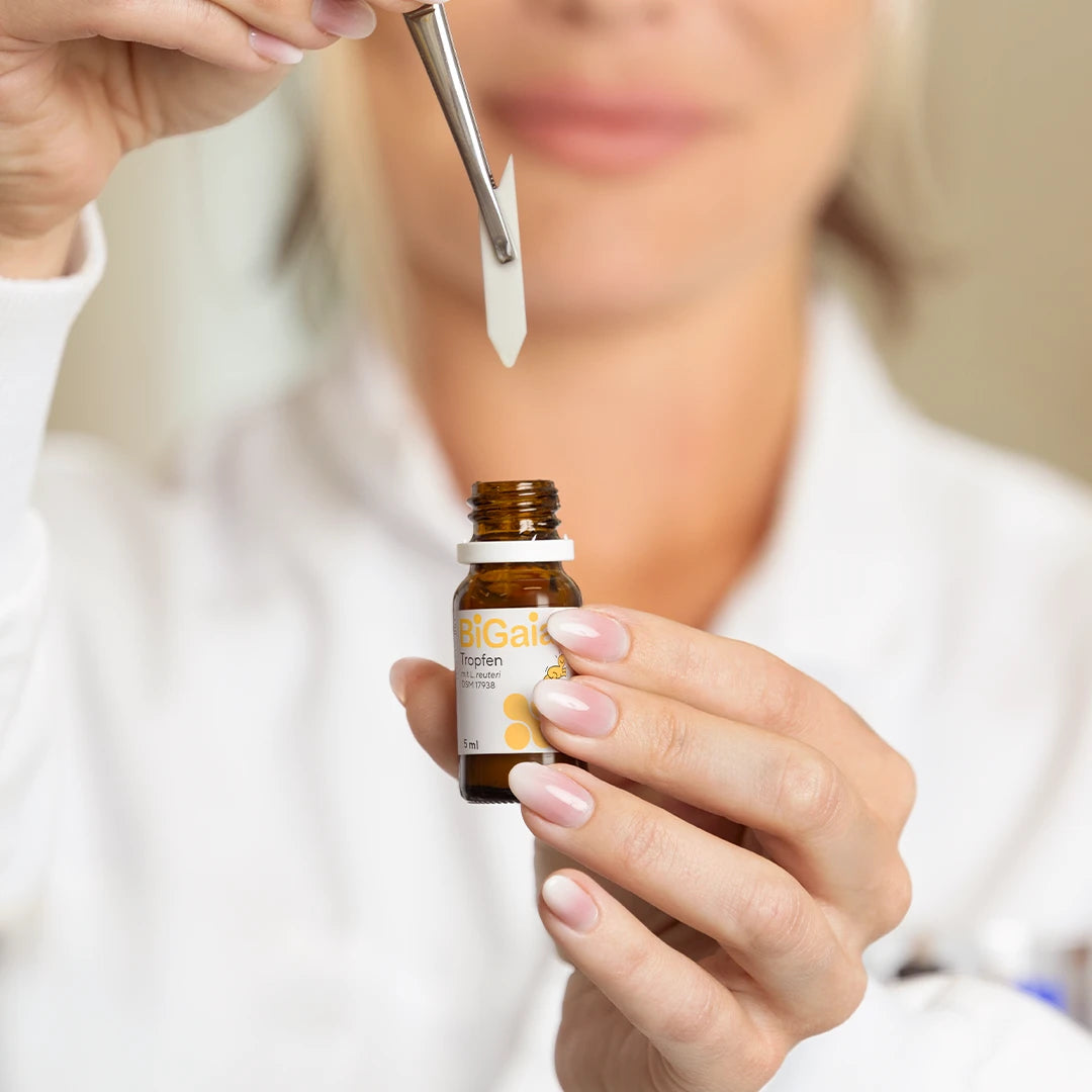 Dieser kleine Streifen ist echt wichtig: Er schützt die Milchsäurebakterien vor Feuchtigkeit, sodass sie länger aktiv und wirksam bleiben. Es ist keine Kühlung nötig. Es ist nicht nötig, zu überlegen, ob es noch wirkt. Wir legen bei jedem Tropfen großen Wert auf Sicherheit.